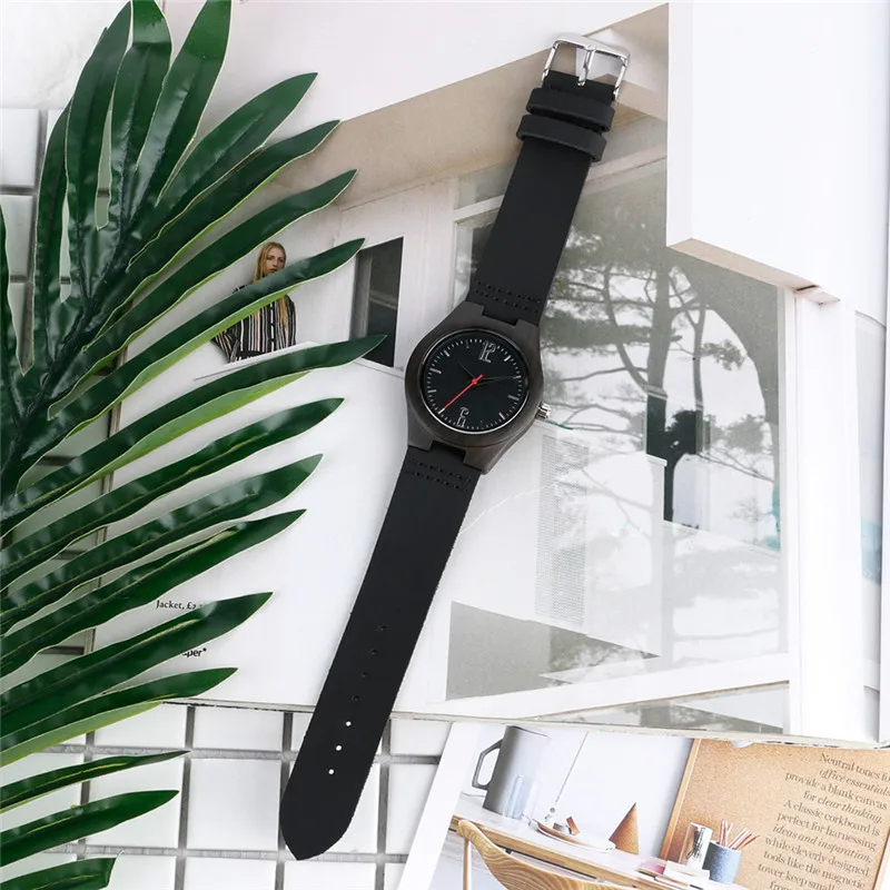 Wooden Watch with Genuine Leather Band